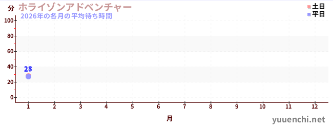2026每年各月的平均等待时间 (VR世界~超逆蹦极~)