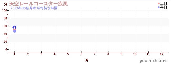 2026每年各月的平均等待时间 (天空轨道过山车〜疾风〜)
