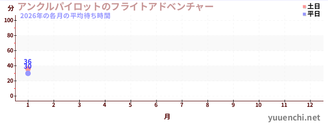 2026每年各月的平均等待时间 (エアクルーズ・ザ・ライド)