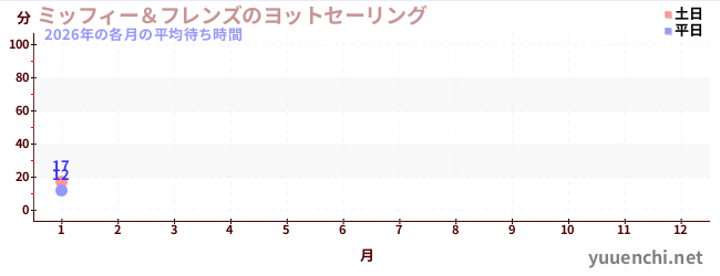 2026每年各月的平均等待时间 (ミッフィー&フレンズのヨットセーリング)