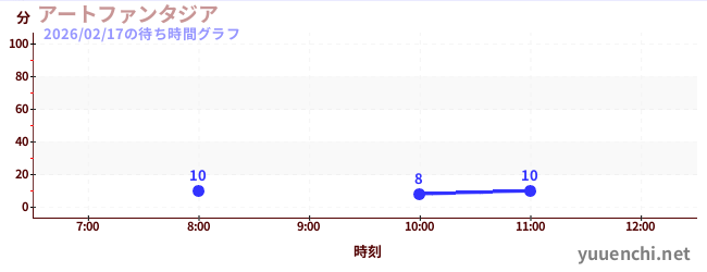 Wait time graph so far today home wait time graph list Wait time graph so far today 画像提供:Huistenbosch realtimewait time past congestioncalendar today's congestion attractionlist wait timegraph attractionranking Hourly graph Daily graph Monthly graph Latest 3 weeks ある年に日ごとグラフ 02/11 02/12 02/13 02/14 02/15 02/16 02/17 Wait time graph so far today (Art Fantasia)
