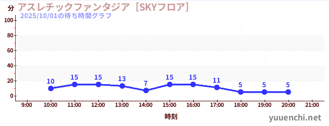 2025/10/01の待ち時間グラフ (アスレチックファンタジア[SKYフロア])