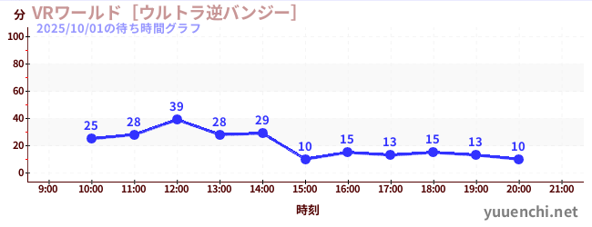 2025/10/01の待ち時間グラフ (VRワールド[ウルトラ逆バンジー])