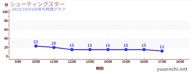 2025/10/01の待ち時間グラフ (シューティングスター)