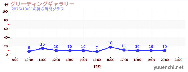 2025/10/01の待ち時間グラフ (グリーティングギャラリー)