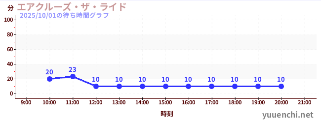 2025/10/01の待ち時間グラフ (エアクルーズ・ザ・ライド)
