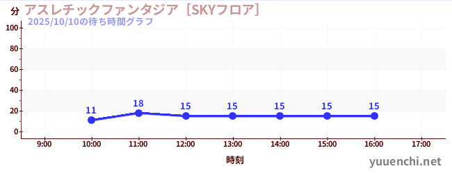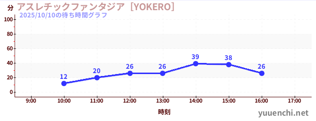 2025/10/10の待ち時間グラフ (アスレチックファンタジア[YOKERO])