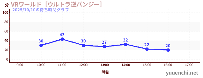 2025/10/10の待ち時間グラフ (VRワールド[ウルトラ逆バンジー])