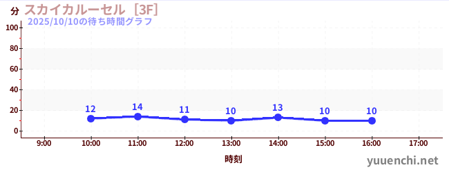2025/10/10の待ち時間グラフ (スカイカルーセル[3F])