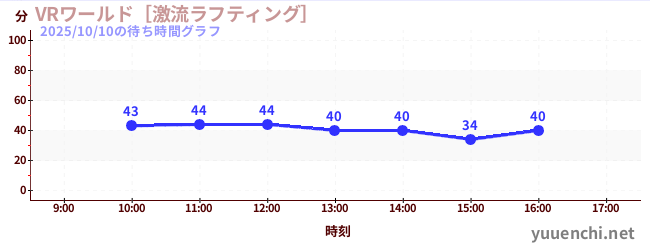 2025/10/10の待ち時間グラフ (VRワールド[激流ラフティング])