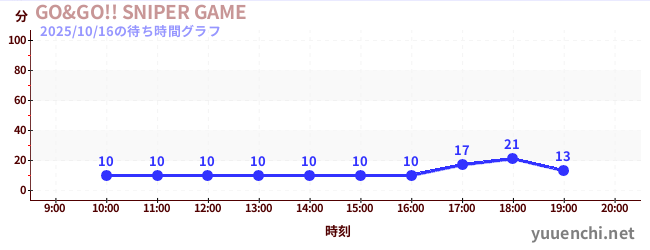 2025/10/16の待ち時間グラフ (GO&GO!! SNIPER GAME)