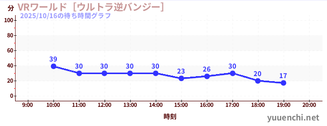 2025/10/16の待ち時間グラフ (VRワールド[ウルトラ逆バンジー])