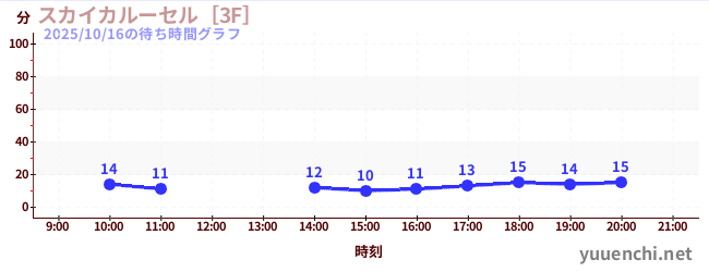 2025/10/16の待ち時間グラフ (スカイカルーセル[3F])