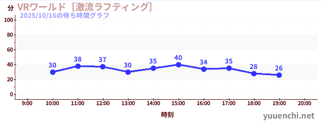 2025/10/16の待ち時間グラフ (VRワールド[激流ラフティング])