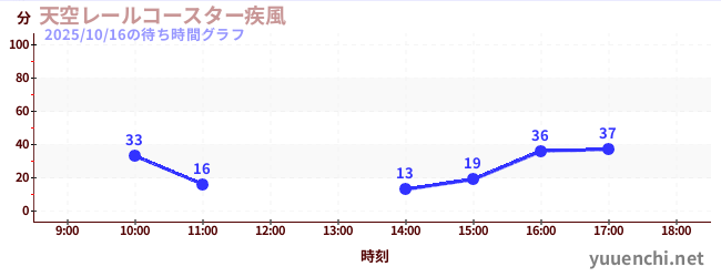 2025/10/16の待ち時間グラフ (天空レールコースター疾風)