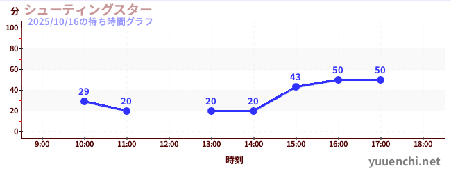 2025/10/16の待ち時間グラフ (シューティングスター)