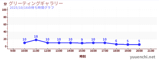 2025/10/16の待ち時間グラフ (グリーティングギャラリー)