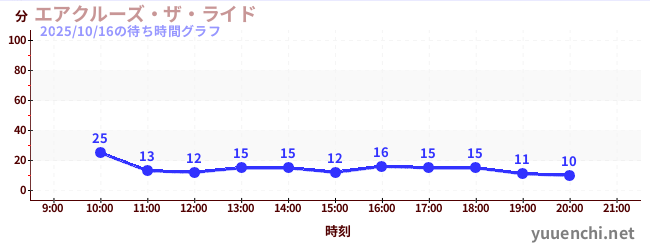 2025/10/16の待ち時間グラフ (エアクルーズ・ザ・ライド)