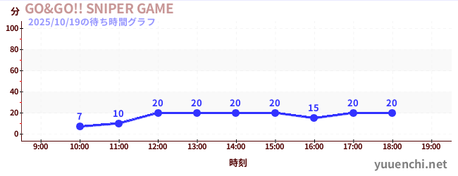 2025/10/19の待ち時間グラフ (GO&GO!! SNIPER GAME)