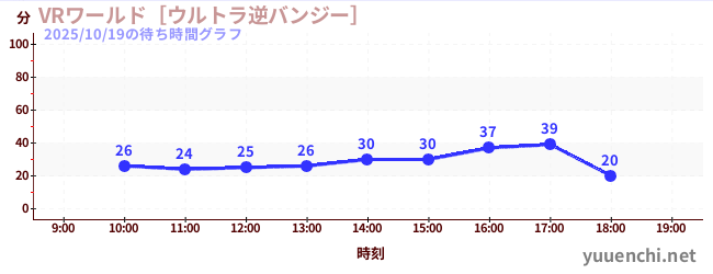 2025/10/19の待ち時間グラフ (VRワールド[ウルトラ逆バンジー])