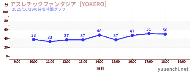 2025/10/19の待ち時間グラフ (アスレチックファンタジア[YOKERO])