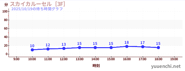 2025/10/19の待ち時間グラフ (スカイカルーセル[3F])