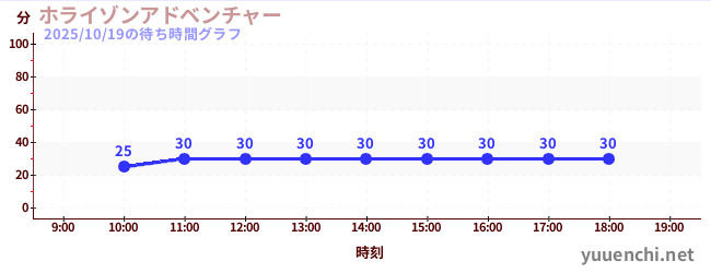 2025/10/19の待ち時間グラフ (ホライゾンアドベンチャー)