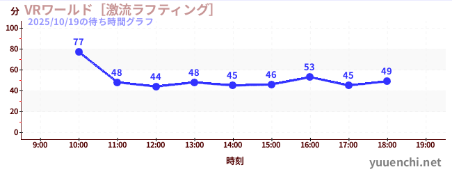 2025/10/19の待ち時間グラフ (VRワールド[激流ラフティング])