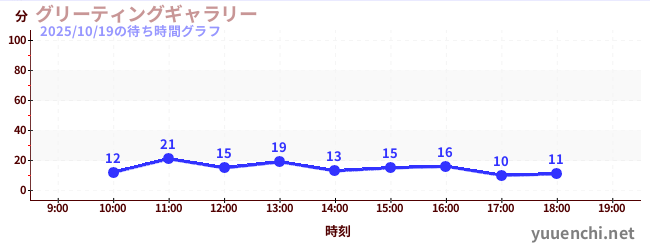 2025/10/19の待ち時間グラフ (グリーティングギャラリー)