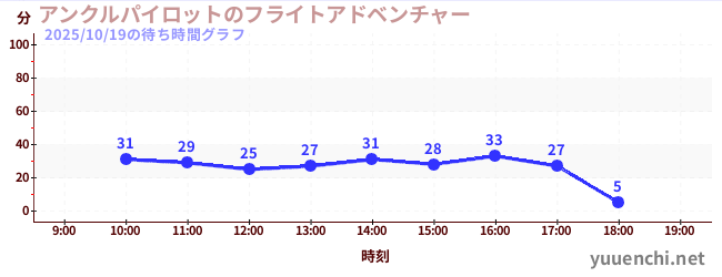 2025/10/19の待ち時間グラフ (アンクルパイロットのフライトアドベンチャー)
