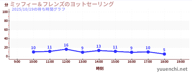 2025/10/19の待ち時間グラフ (ミッフィー&フレンズのヨットセーリング)