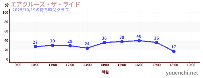 2025/10/19の待ち時間グラフ (エアクルーズ・ザ・ライド)