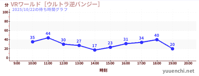 2025/10/22の待ち時間グラフ (VRワールド[ウルトラ逆バンジー])