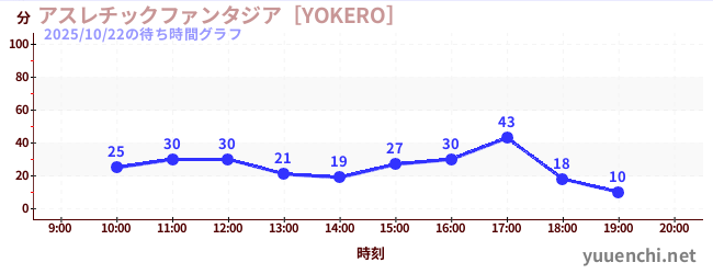 2025/10/22の待ち時間グラフ (アスレチックファンタジア[YOKERO])