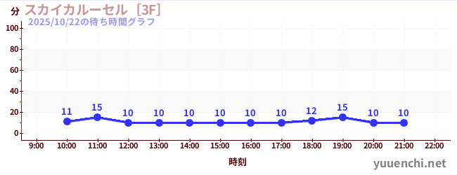 2025/10/22の待ち時間グラフ (スカイカルーセル[3F])