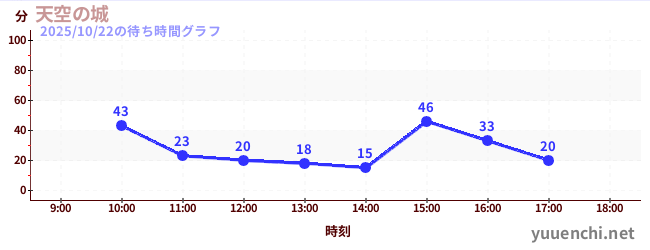2025/10/22の待ち時間グラフ (天空の城)