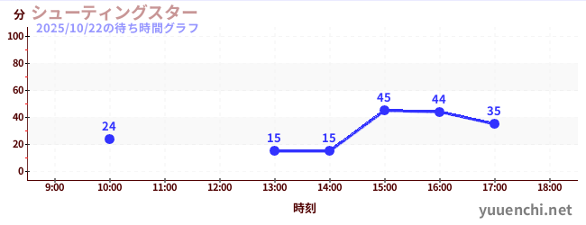2025/10/22の待ち時間グラフ (シューティングスター)