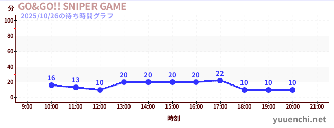 2025/10/26の待ち時間グラフ (GO&GO!! SNIPER GAME)