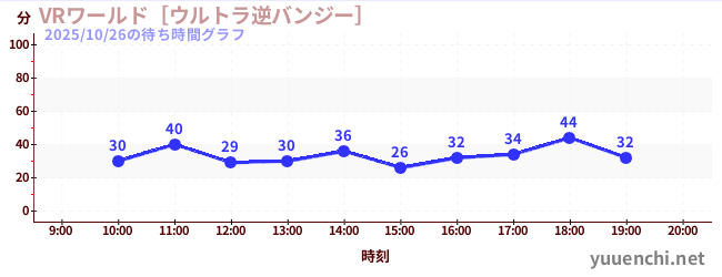 2025/10/26の待ち時間グラフ (VRワールド[ウルトラ逆バンジー])