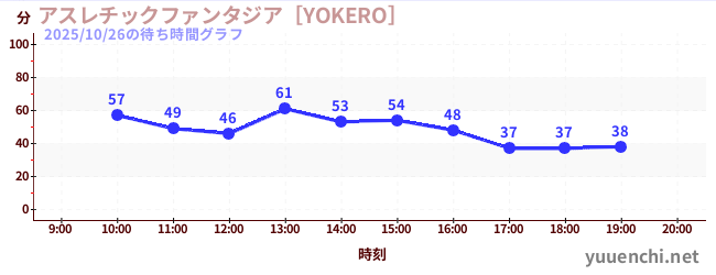 2025/10/26の待ち時間グラフ (アスレチックファンタジア[YOKERO])