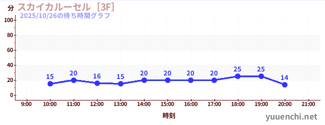 2025/10/26の待ち時間グラフ (スカイカルーセル[3F])