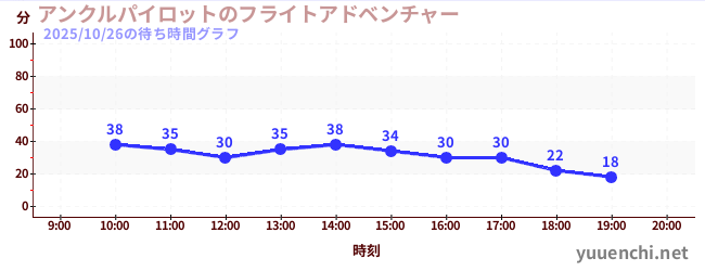 2025/10/26の待ち時間グラフ (アンクルパイロットのフライトアドベンチャー)