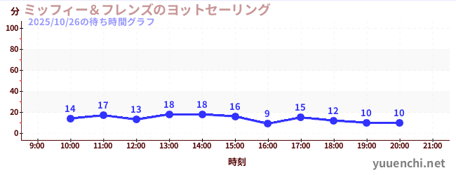 2025/10/26の待ち時間グラフ (ミッフィー&フレンズのヨットセーリング)
