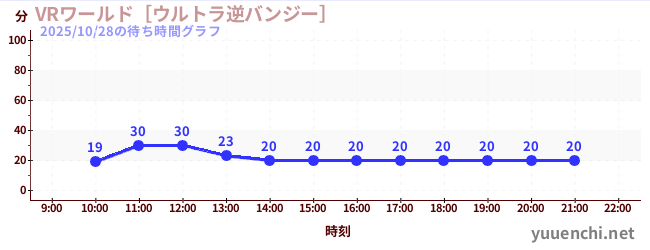 2025/10/28の待ち時間グラフ (VRワールド[ウルトラ逆バンジー])