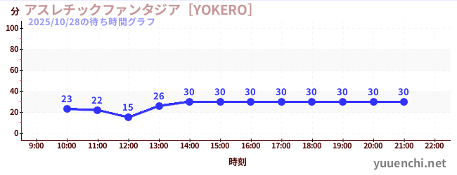 2025/10/28の待ち時間グラフ (アスレチックファンタジア[YOKERO])