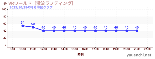 2025/10/28の待ち時間グラフ (VRワールド[激流ラフティング])