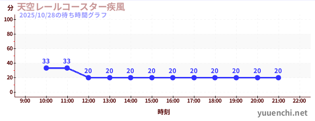 2025/10/28の待ち時間グラフ (天空レールコースター疾風)