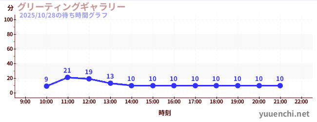 2025/10/28の待ち時間グラフ (グリーティングギャラリー)