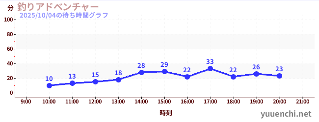 2025/10/04の待ち時間グラフ (釣りアドべンチャー)