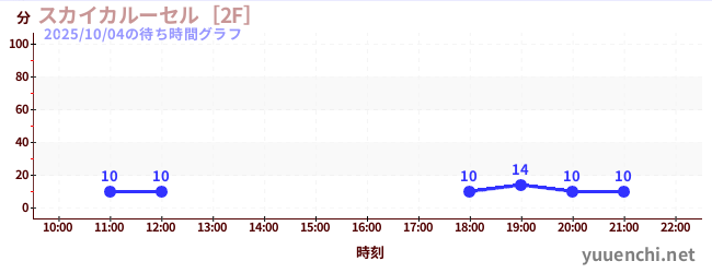 2025/10/04の待ち時間グラフ (スカイカルーセル[2F])